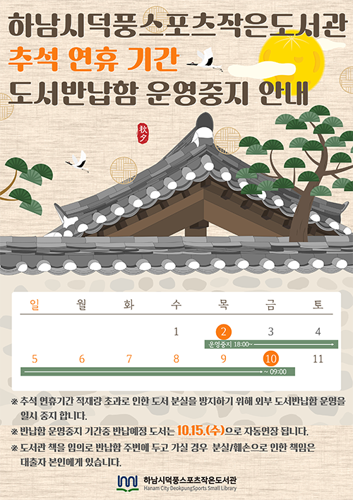 2025년 추석 연휴기간 외부도서반납함 운영 중지 안내