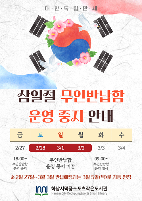 2026년 설 연휴 무인반납함 운영 중지 안내