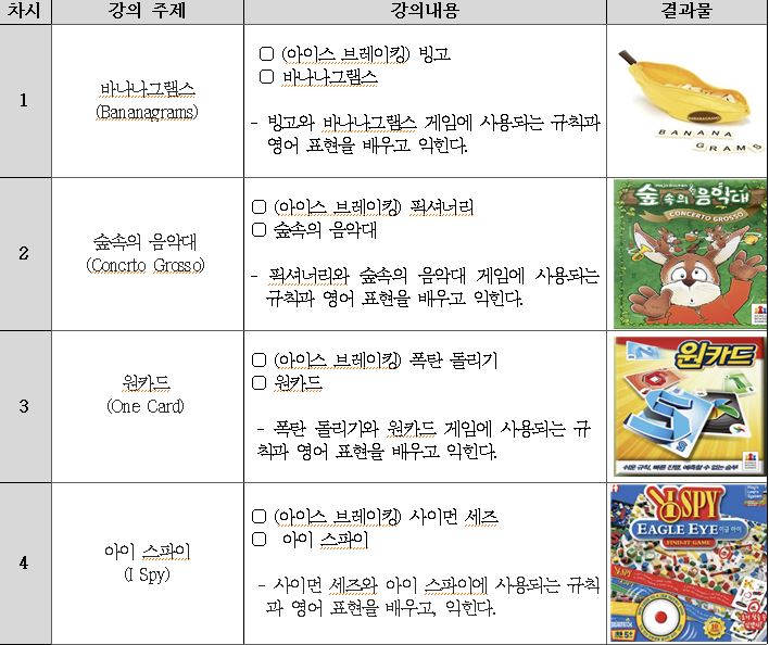 | 강좌명 | 영어랑 친해지는 보드게임 |