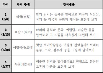 | 강좌명 | 그림으로 남기는 세계 문화 탐험 |