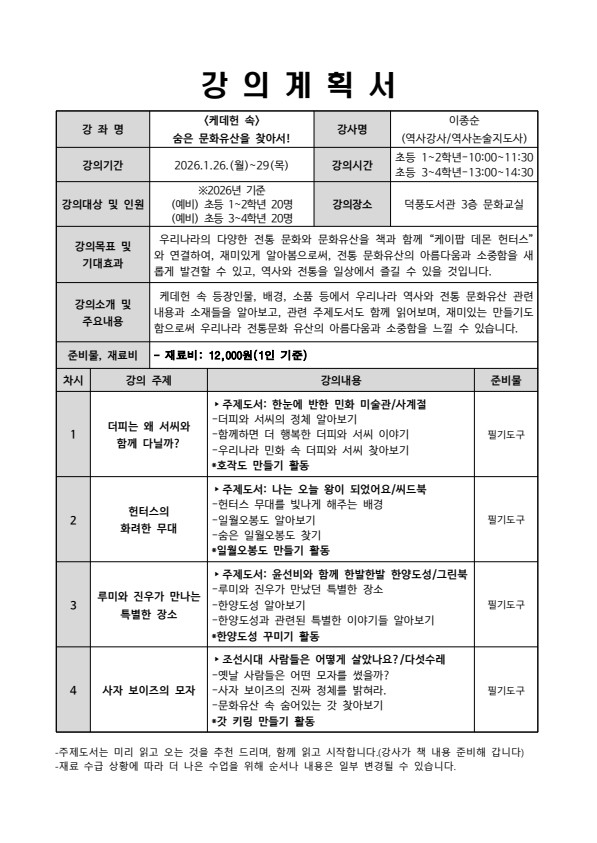 | 강좌명 | [예비초3~4] 케데헌 속 숨은 문화유산을 찾아서! |