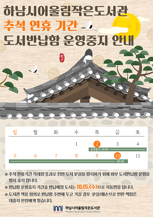 2025년 추석 연휴기간 외부도서반납함 운영 중지 안내