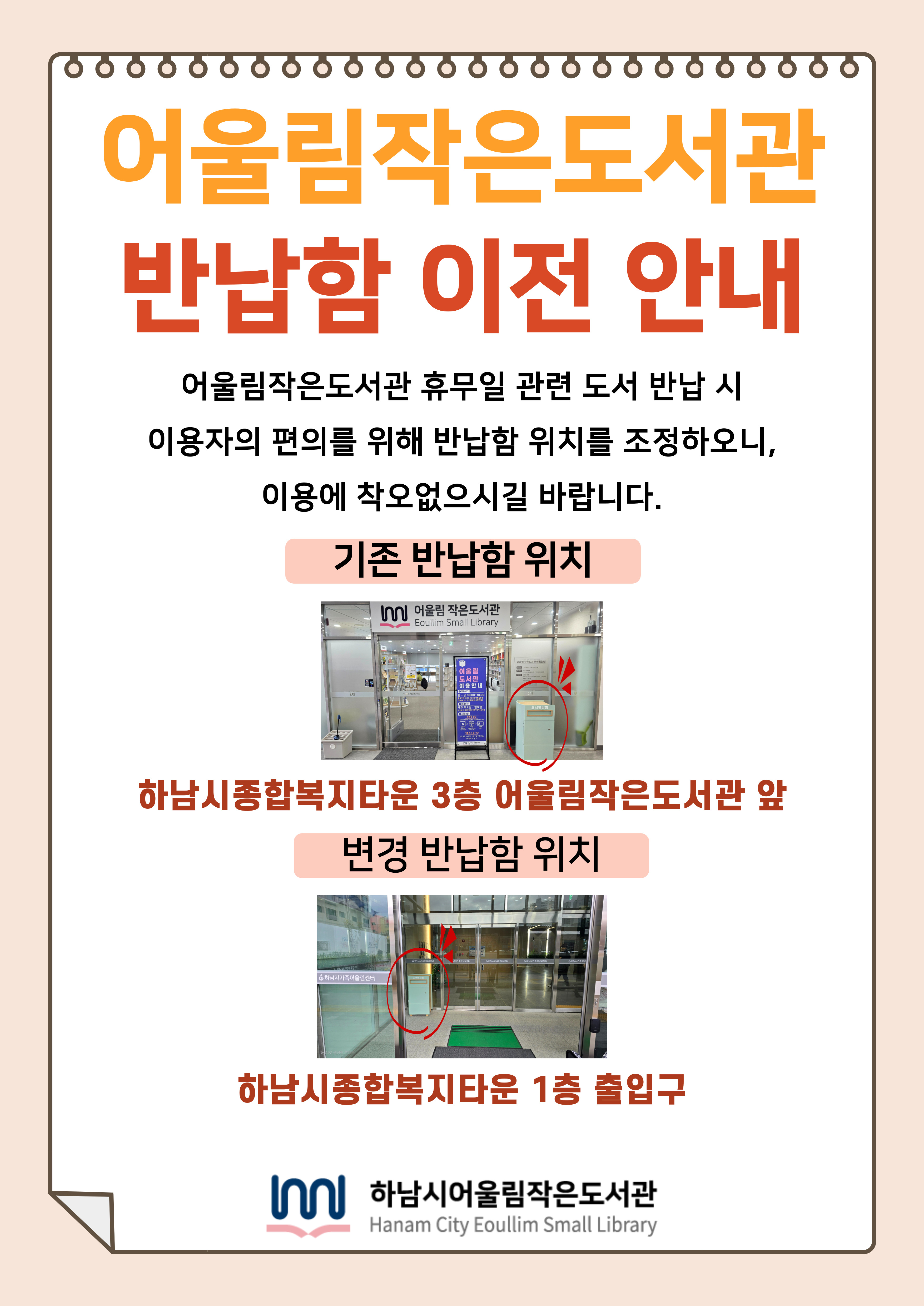 어울림작은도서관 반납함 이전 안내