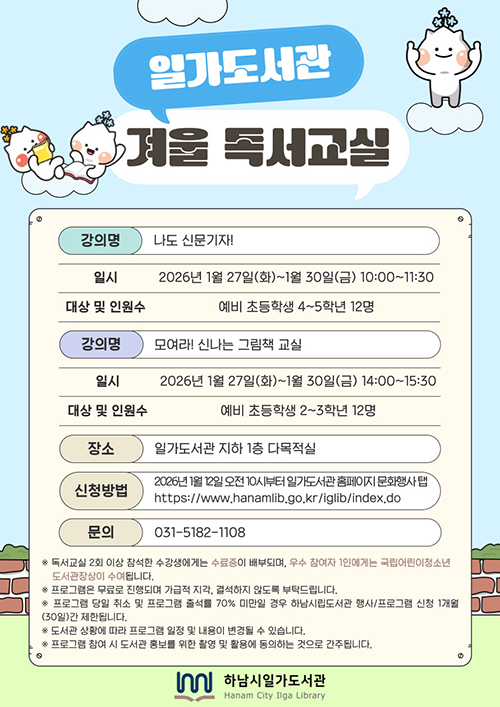 • 유아,어린이실09:00~18:00(평일/토)