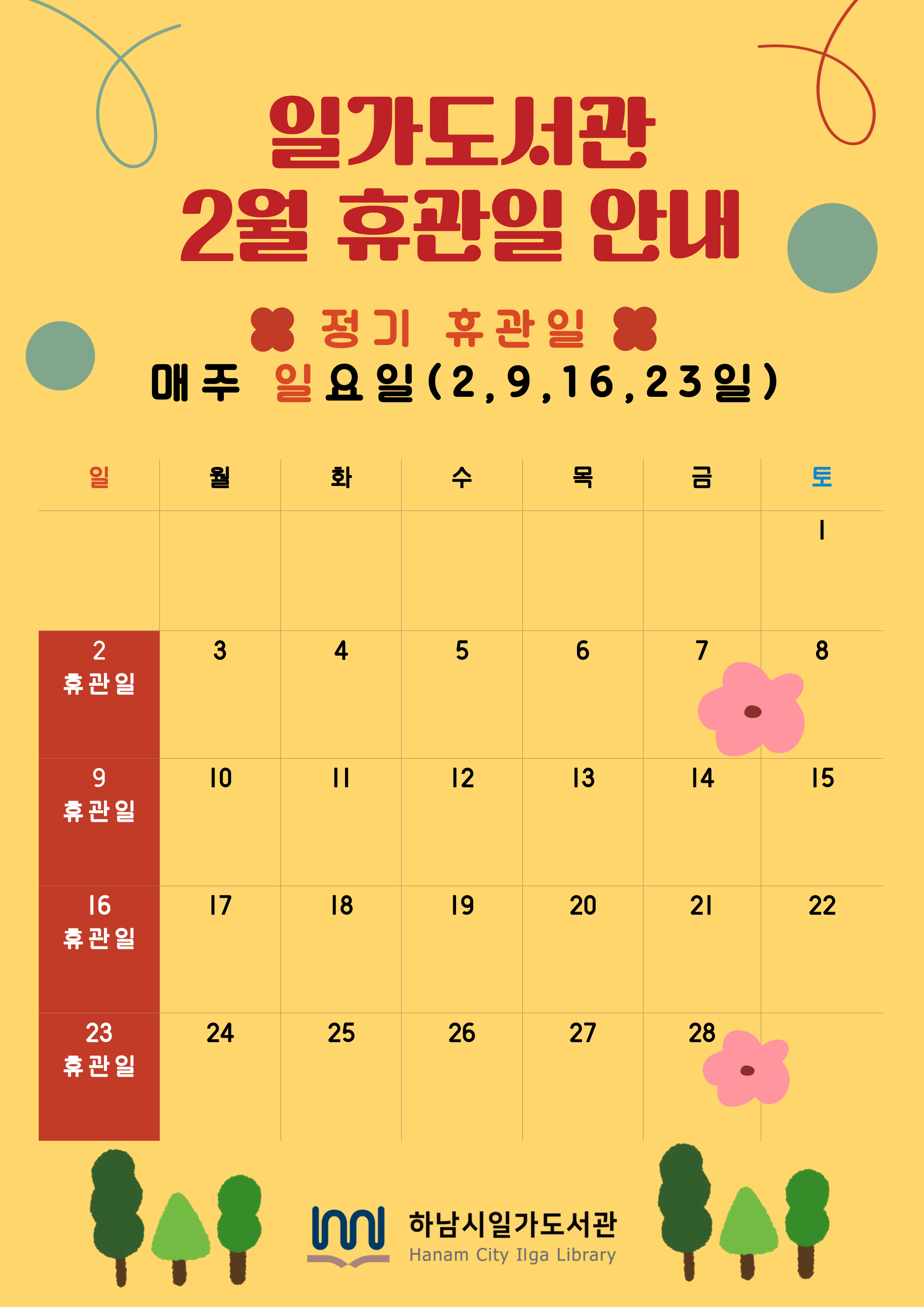 제목 2025년 2월 일가도서관 휴관일