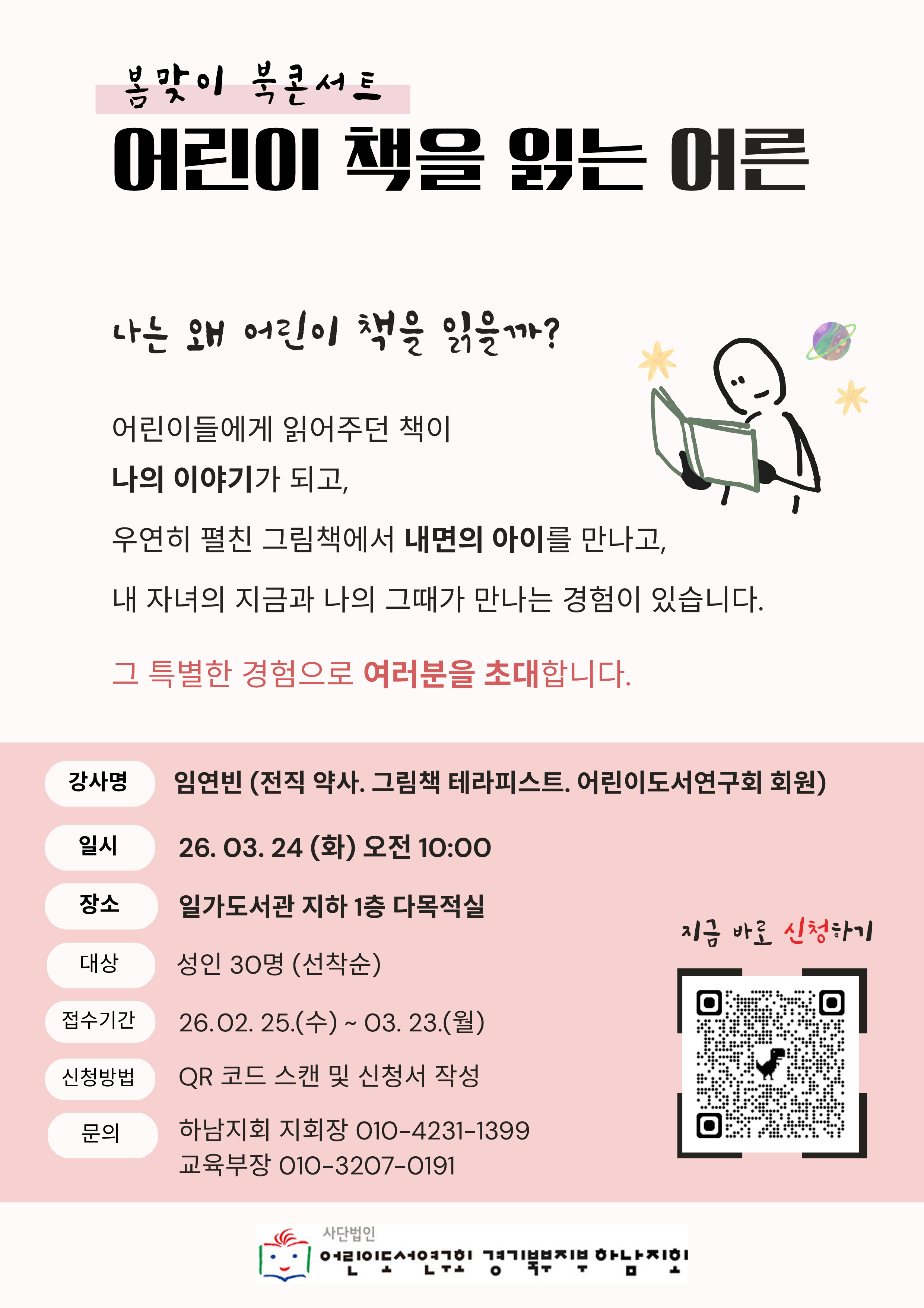 제목 일가도서관 동아리 어린이도서연구회 봄맞이 북콘서트 안내