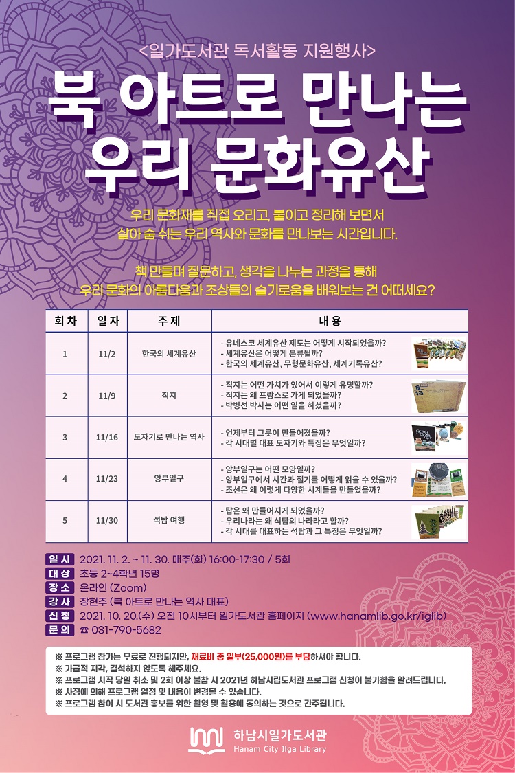 | 강좌명 | <독서활동> 북 아트로 만나는 우리 문화유산 |