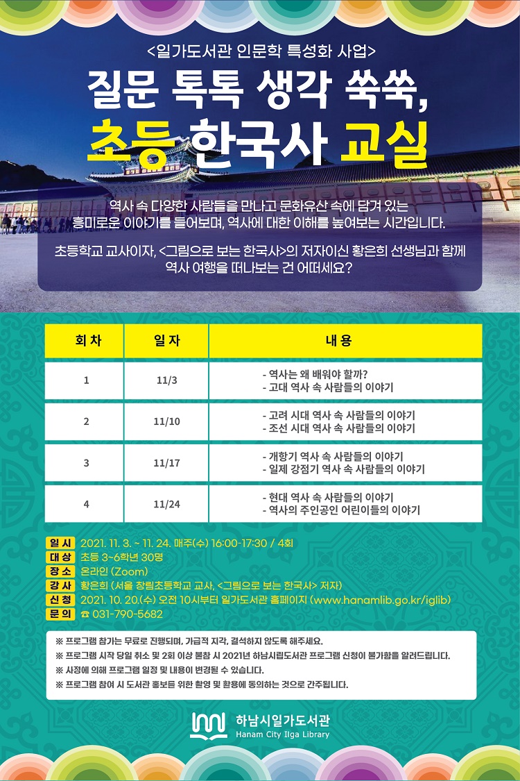| 강좌명 | <인문학> 질문 톡톡 생각 쑥쑥, 초등 한국사 교실 |