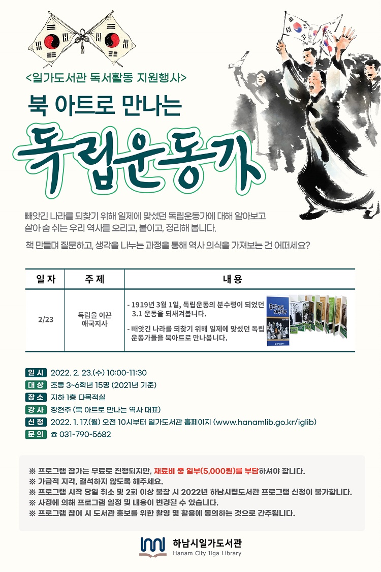 | 강좌명 | <독서활동> 북아트로 만나는 독립운동가 |
