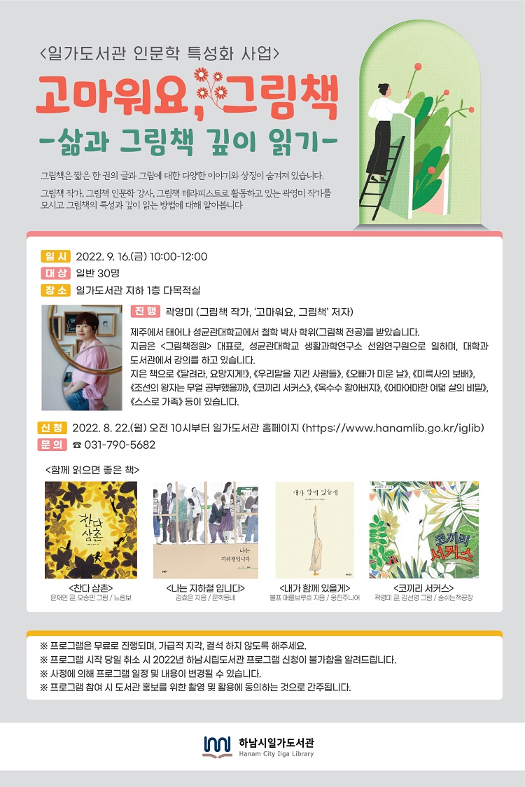| 강좌명 | <인문학> 고마워요, 그림책 – 삶과 그림책 깊이 읽기 |