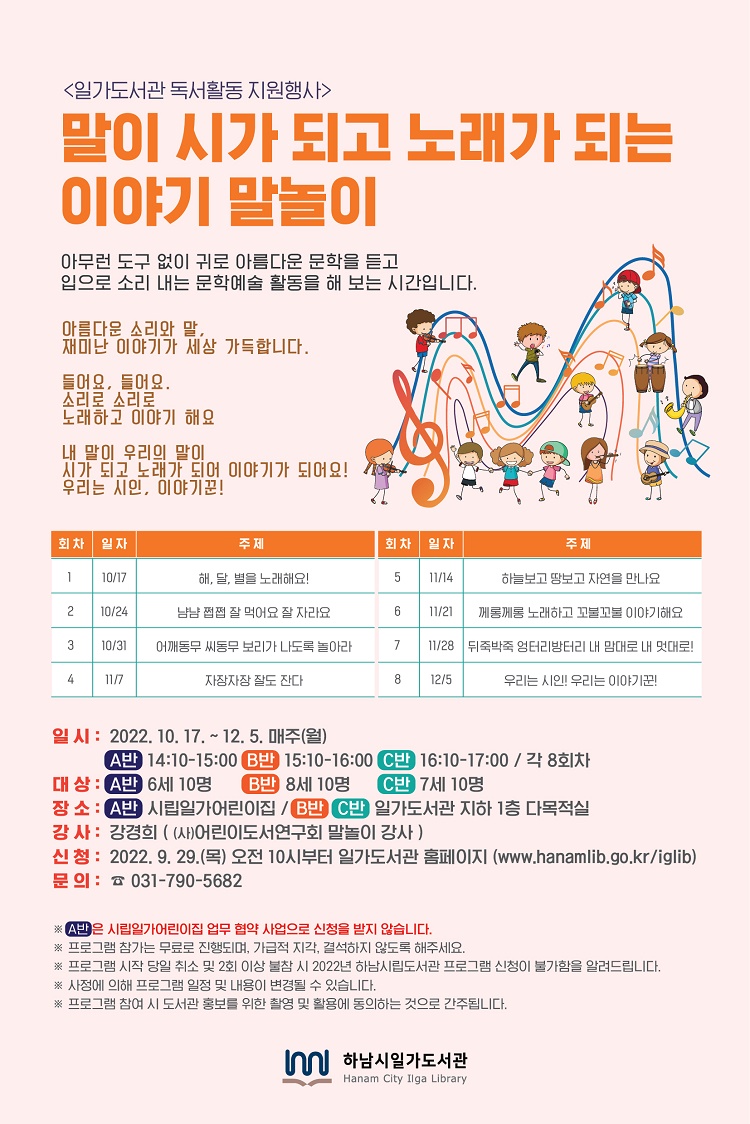 | 강좌명 | <독서활동> 말이 씨가 되고 노래가 되는 이야기 말놀이 (C반) |