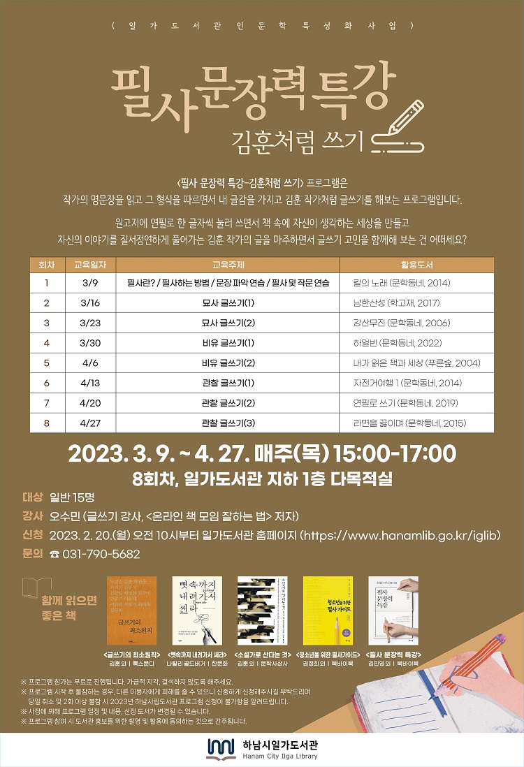 | 강좌명 | <인문학> 필사 문장력 특강 - 김훈 처럼 쓰기 | |