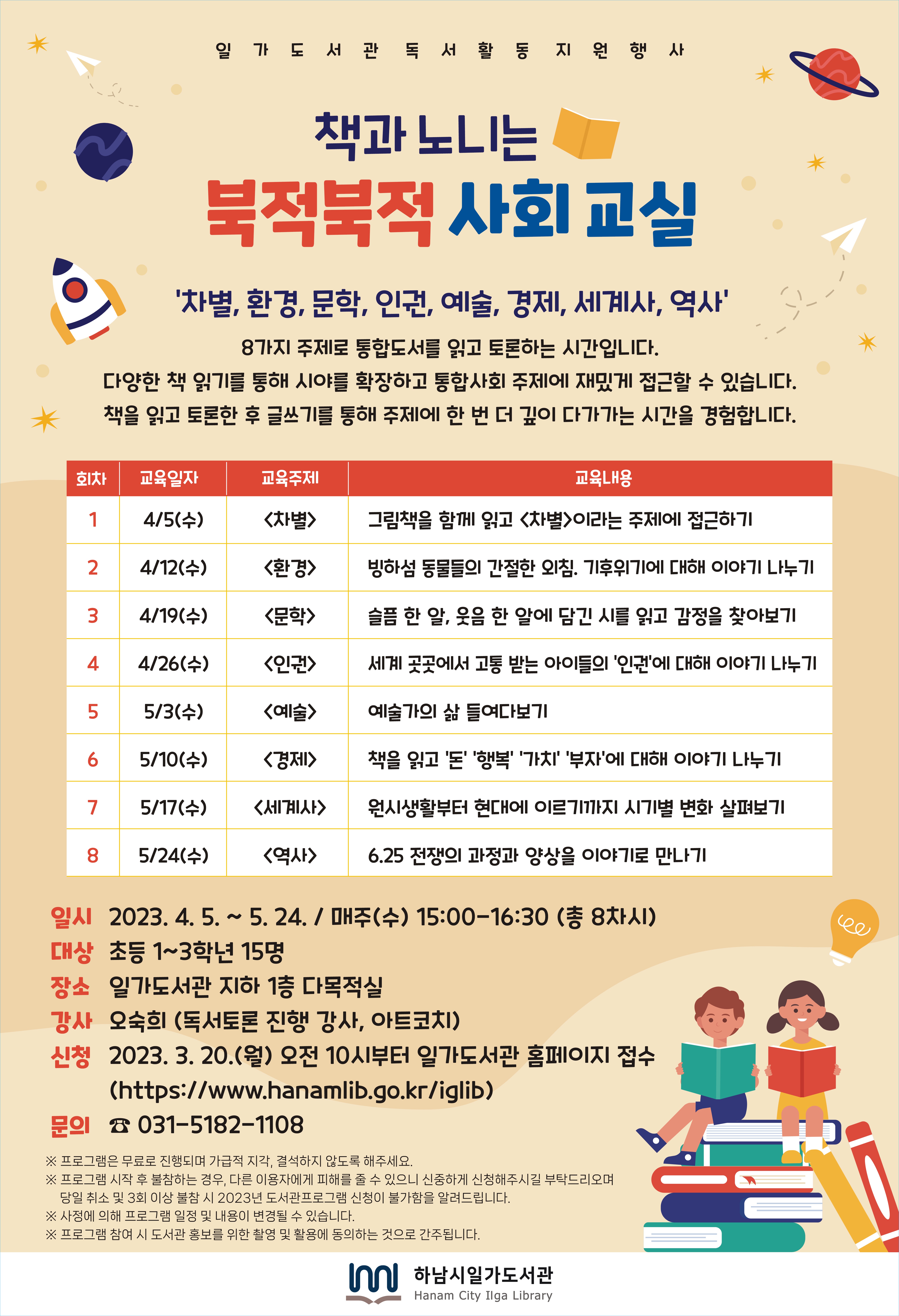 | 강좌명 | <독서활동> 책과 노니는 북적북적 사회 교실 |
