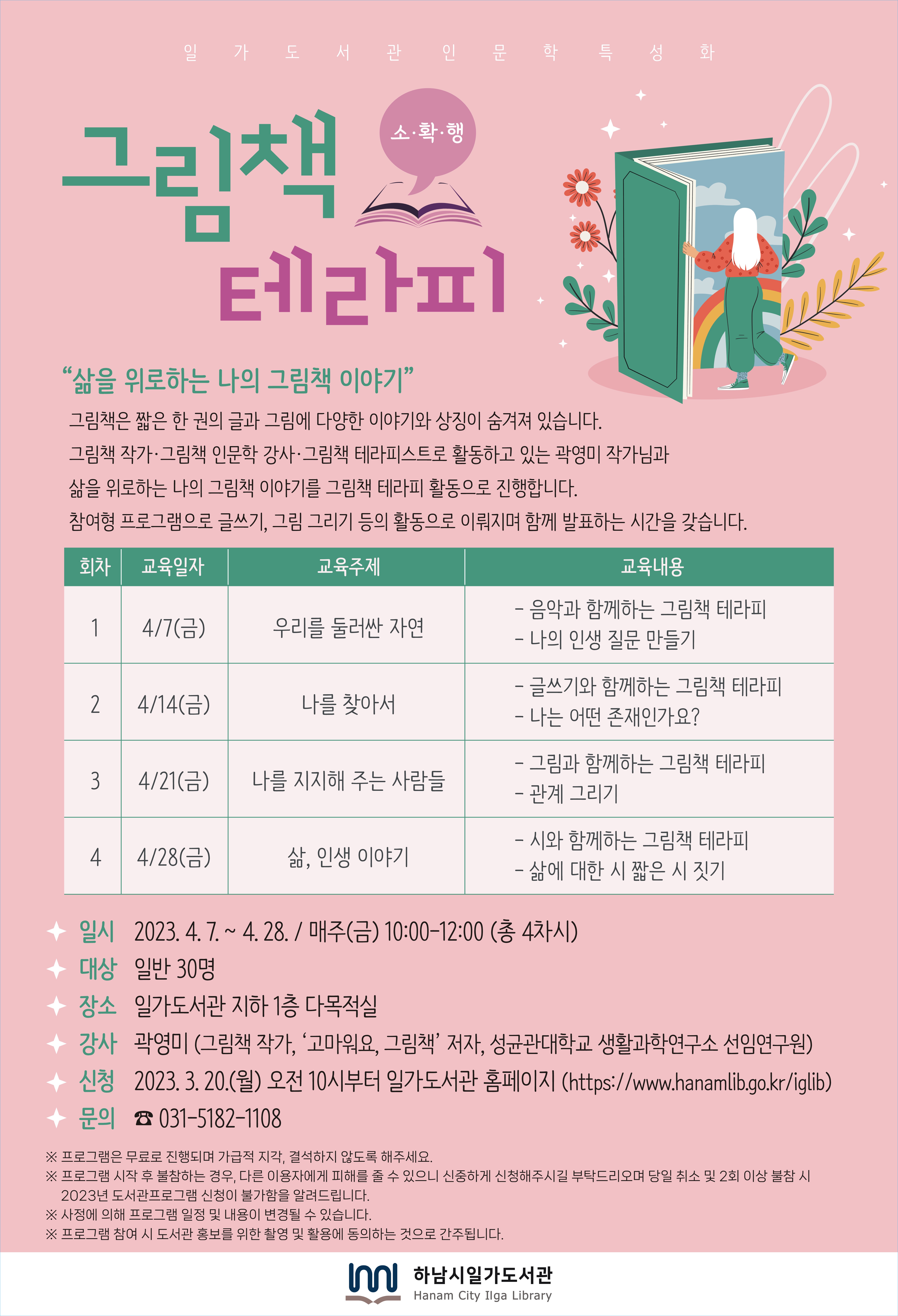 | 강사명 | 곽영미 (그림책 작가, '고마워요, 그림책' 저자, 성균관대학교 샹활과학연구소 선임연구원) |