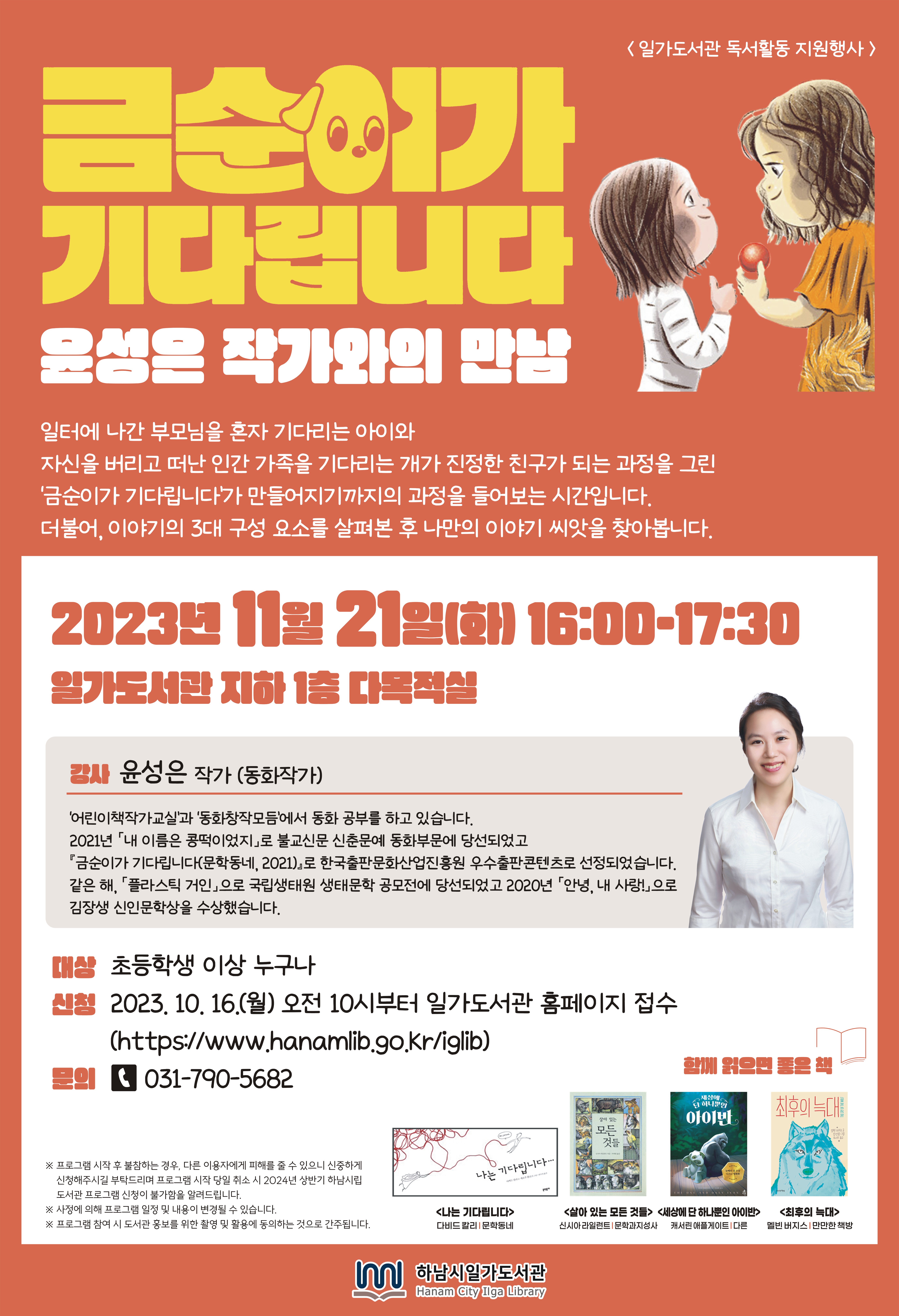 | 강좌명 | <독서활동> '금순이가 기다립니다' 윤성은 작가와의 만남 |