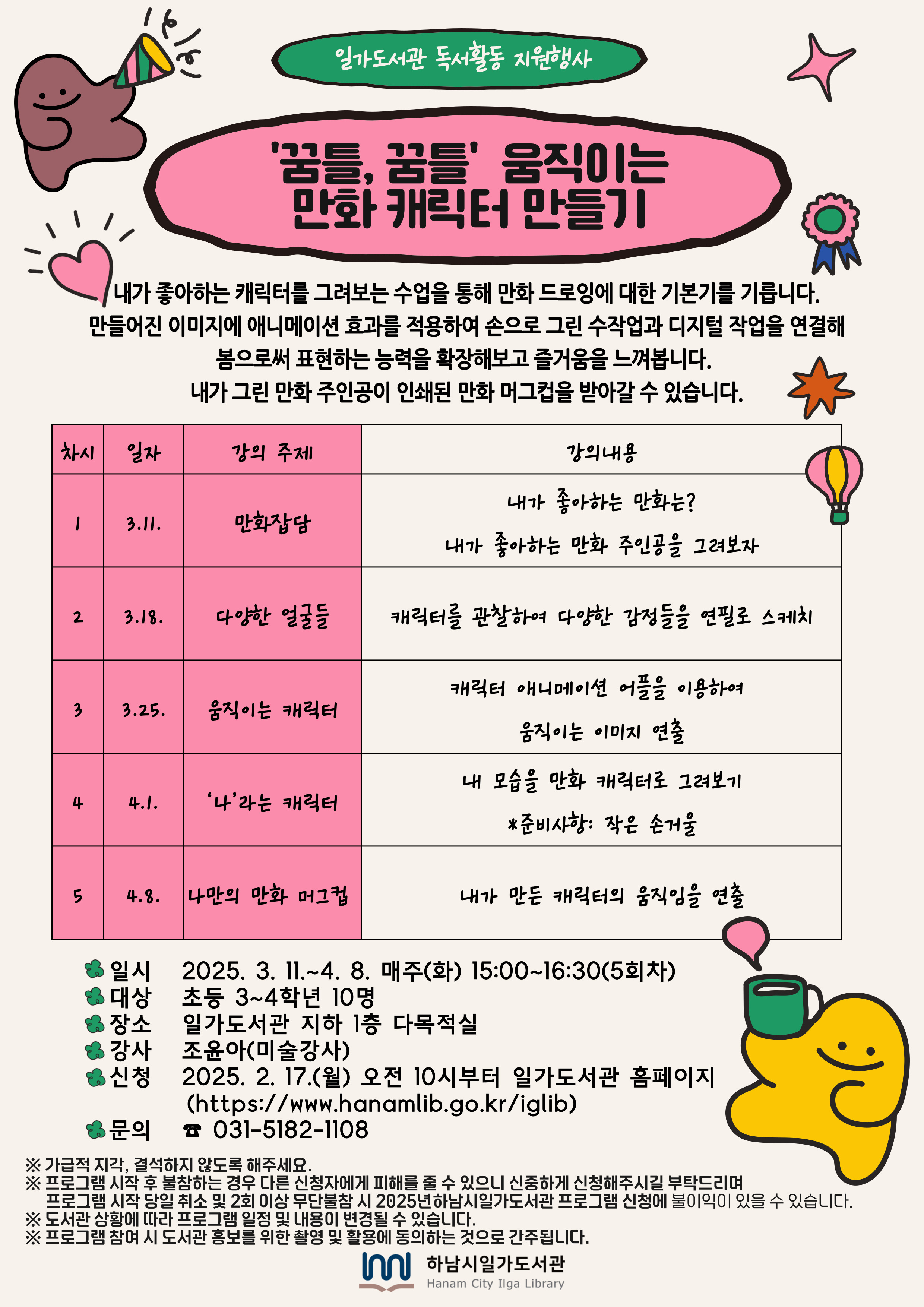 | 강좌명 | <독서활동> 꿈틀꿈틀 움직이는 만화 캐릭터 만들기 |