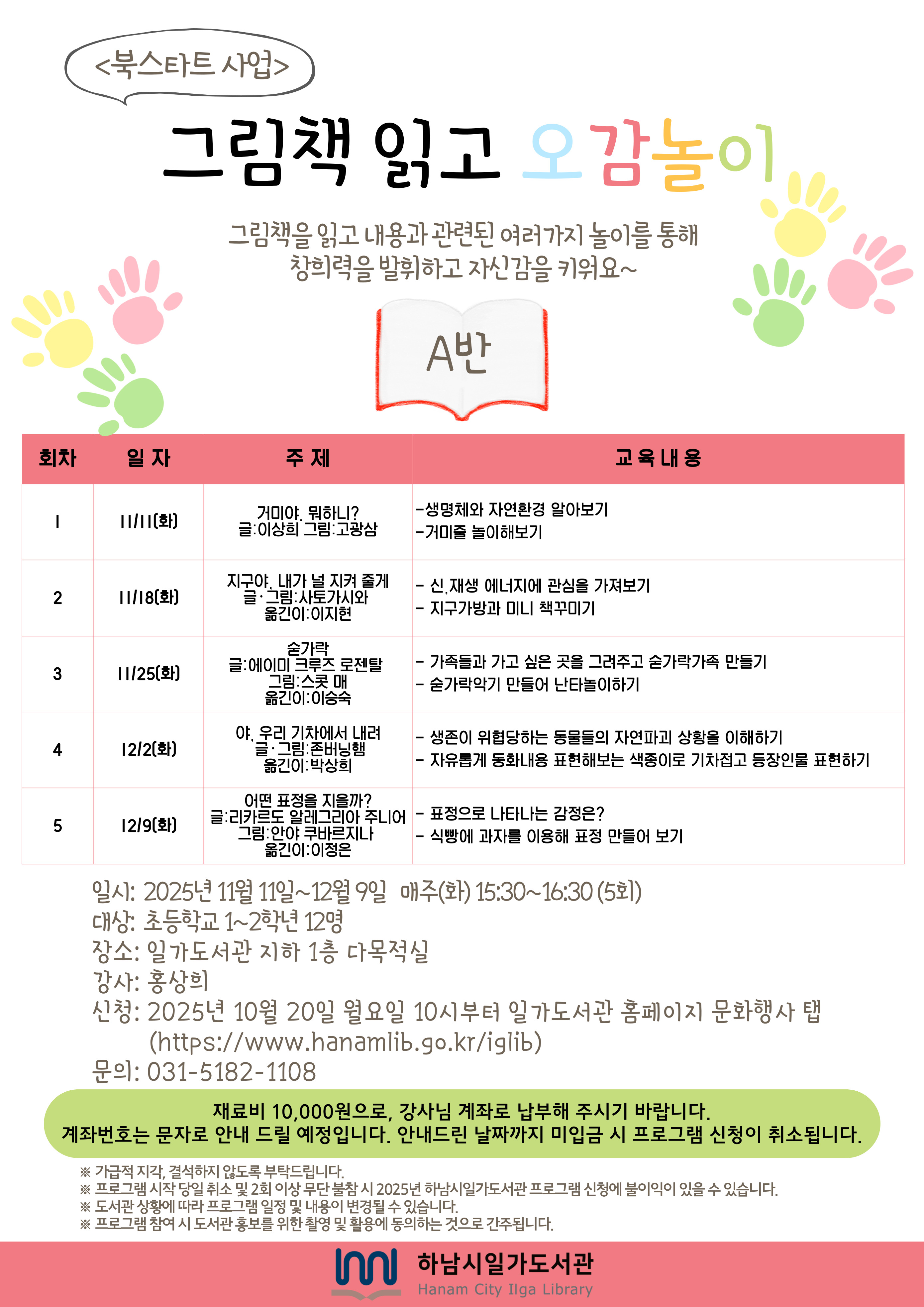 강좌명 | <북스타트>그림책 읽고 오감놀이(A반) |