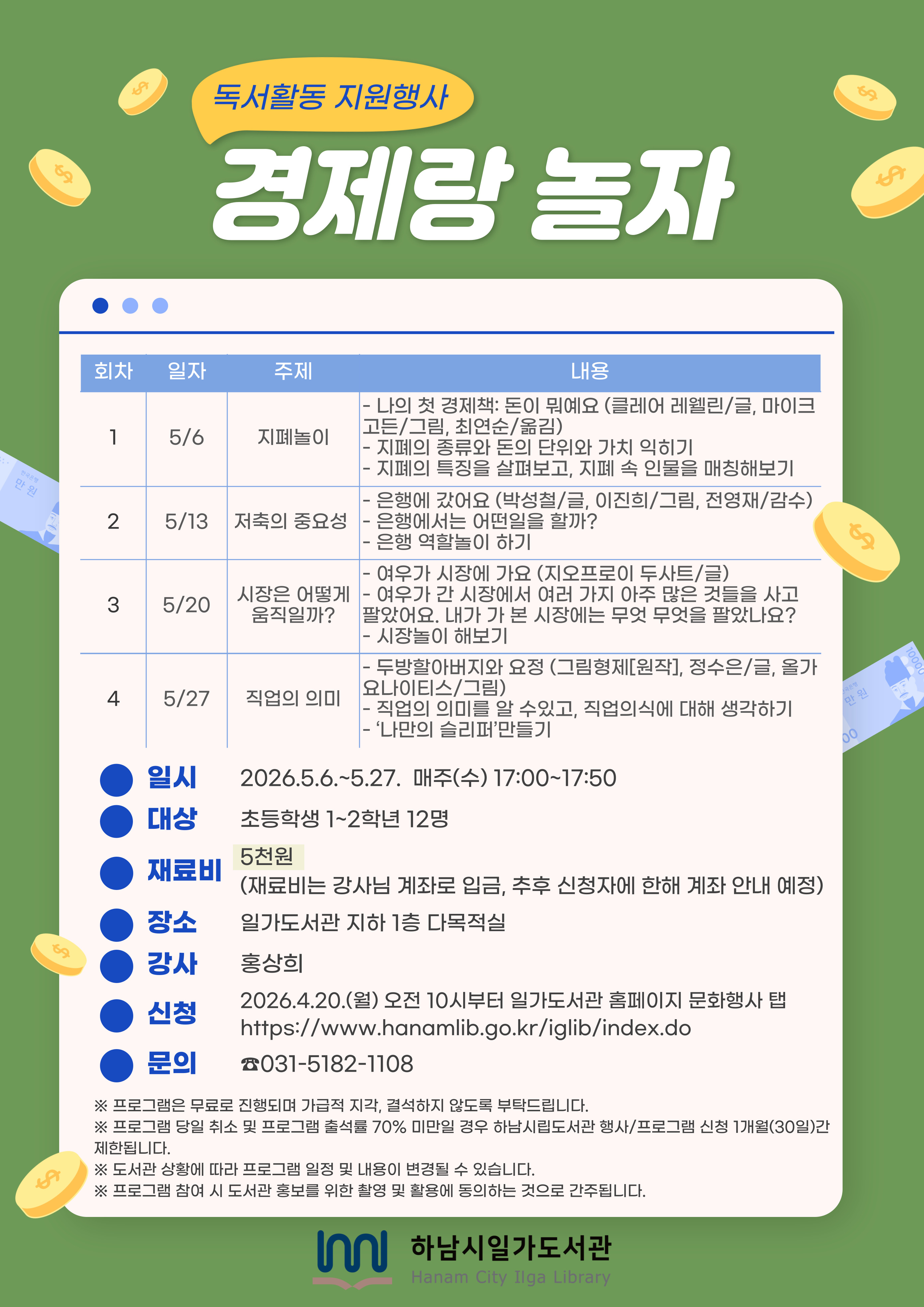 | 강좌명 | <독서활동 지원행사> 경제랑 놀자 |