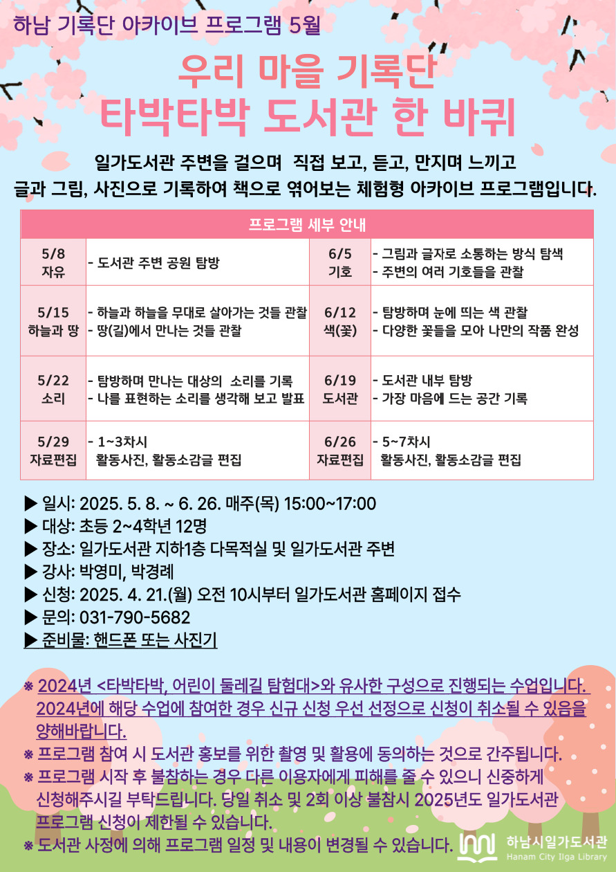 | 강좌명 | <하남 아카이브> 우리 마을 기록단: 타박타박 도서관 한바퀴 |