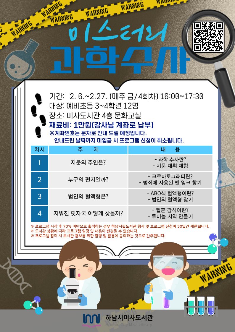 | 강좌명 | (예비 초등 3~4학년)미스터리 과학 수사 |