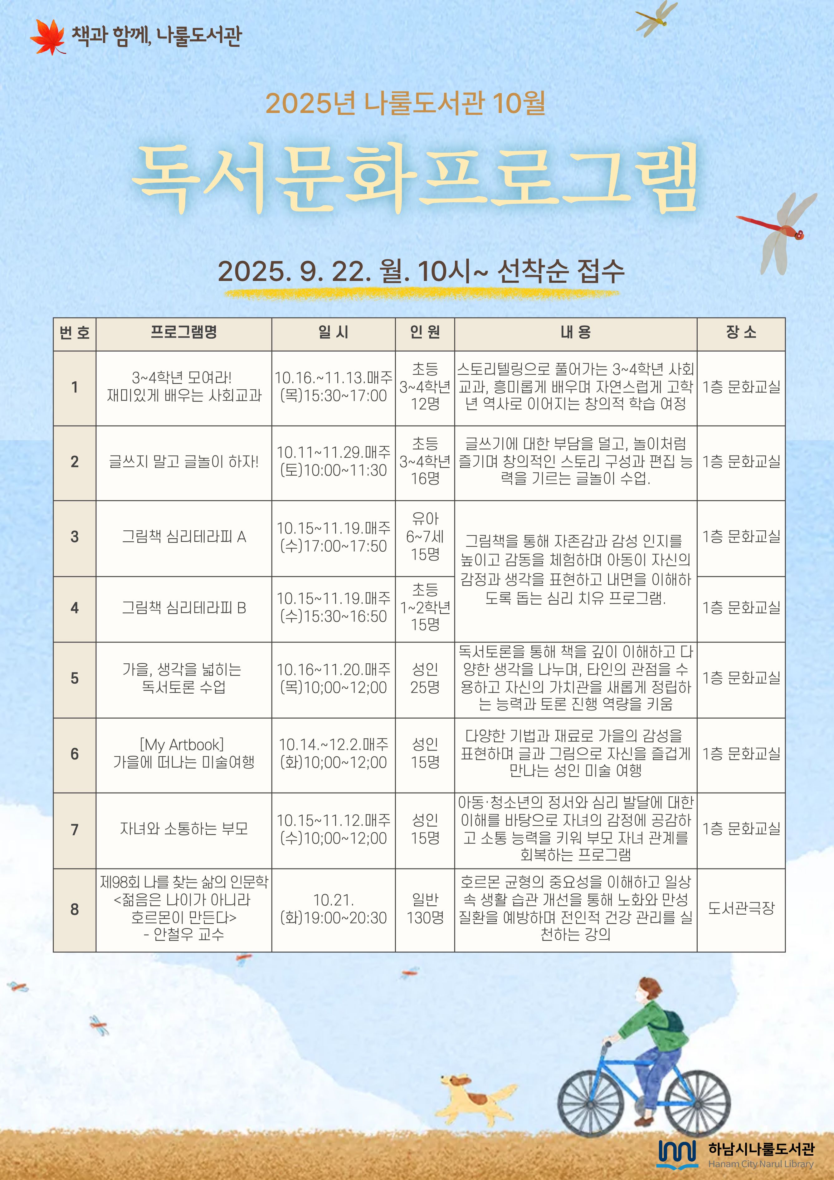 | 제목 | 나룰도서관 10월 독서문화프로그램 안내 |