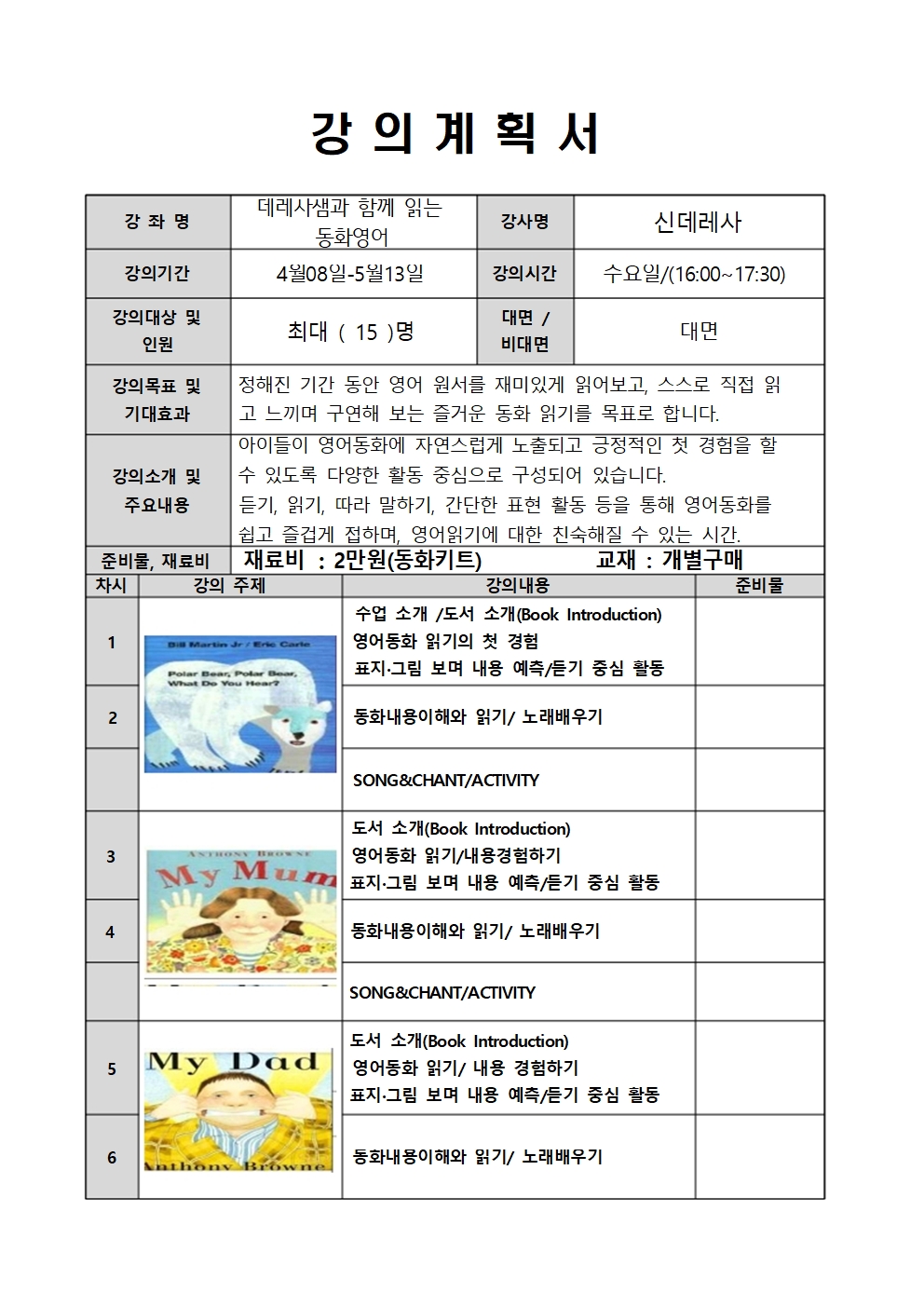 | 강좌명 | [아동]데레사샘과 함께 읽는 동화영어 |