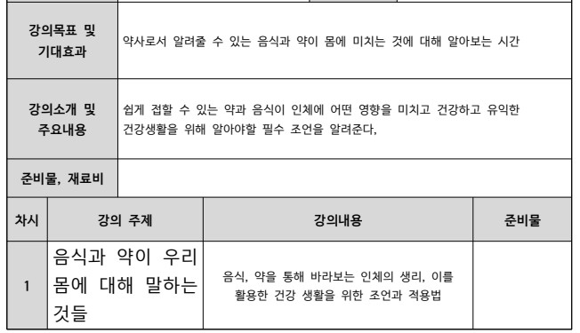 | 강좌명 | [작가와의 만남] 정재훈 약사 - 소식의 과학:음식과 약이 우리 몸에 대해 말하는 것들 |