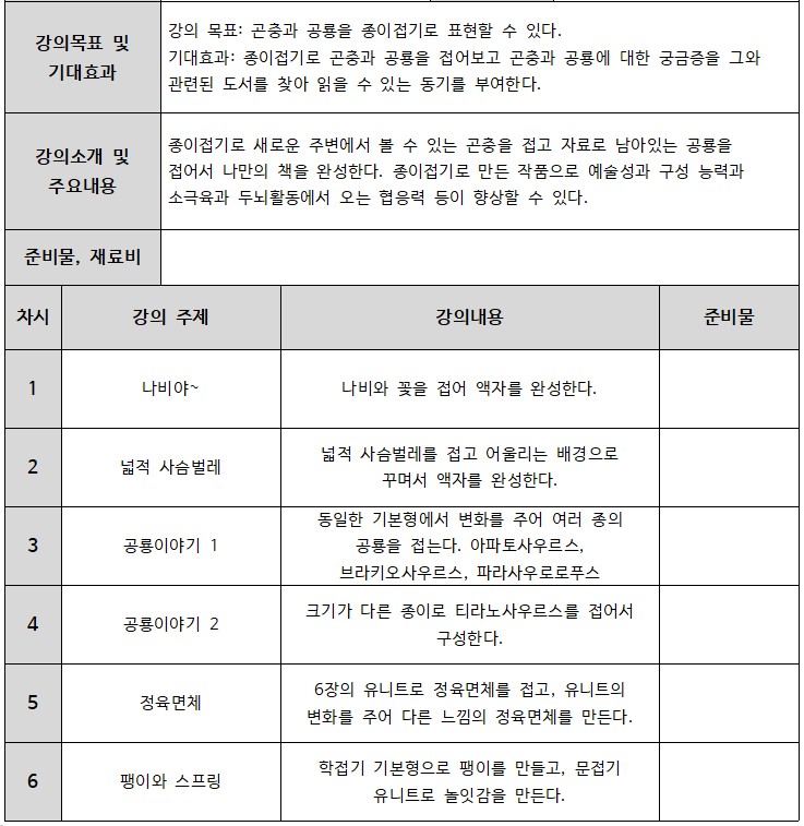 | 강좌명 | [초등3~4학년] 접어서 만나는 쥬라기 & 곤충 나라 |