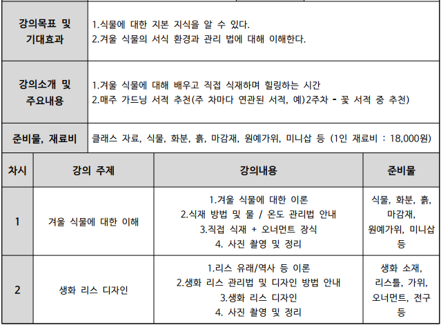 | 강좌명 | [성인] 퇴근길 도서관 심심풀이 가드닝 :시즌2 겨울 식물 |