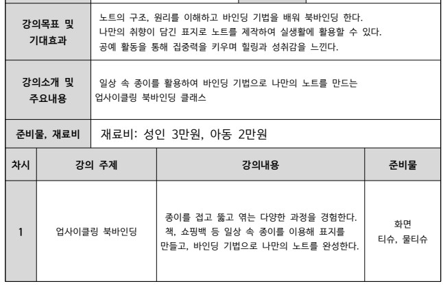 파일명 : 강의계획서 [업사이클링 북바인딩] 나만의 수제노트만들기.pdf