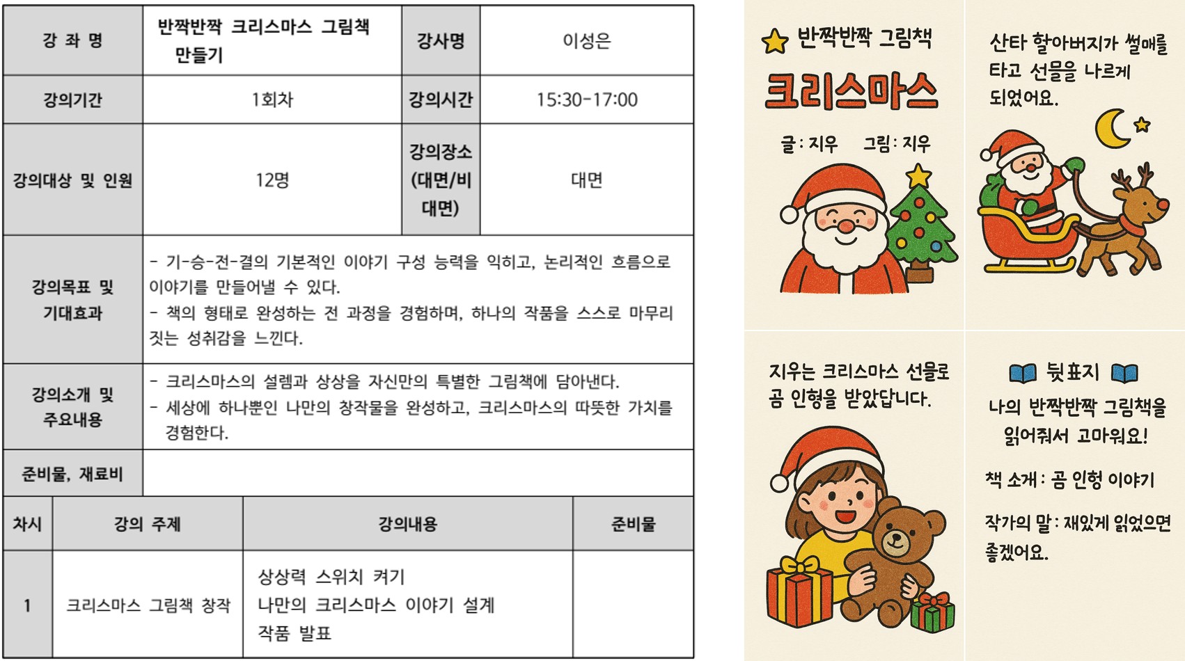 | 강좌명 | [초등3~4학년] 반짝반짝 크리스마스 그림책 만들기 |