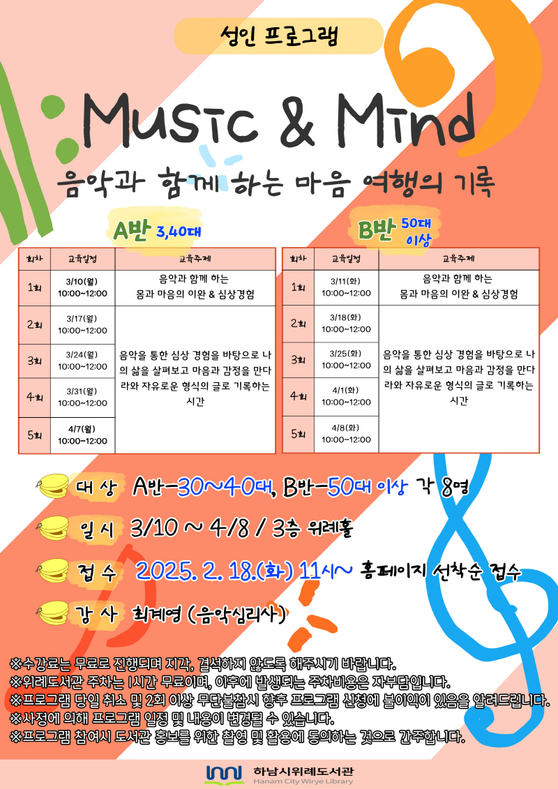 | 강좌명 | <성인-A반(3,40대)> Music&Mind |