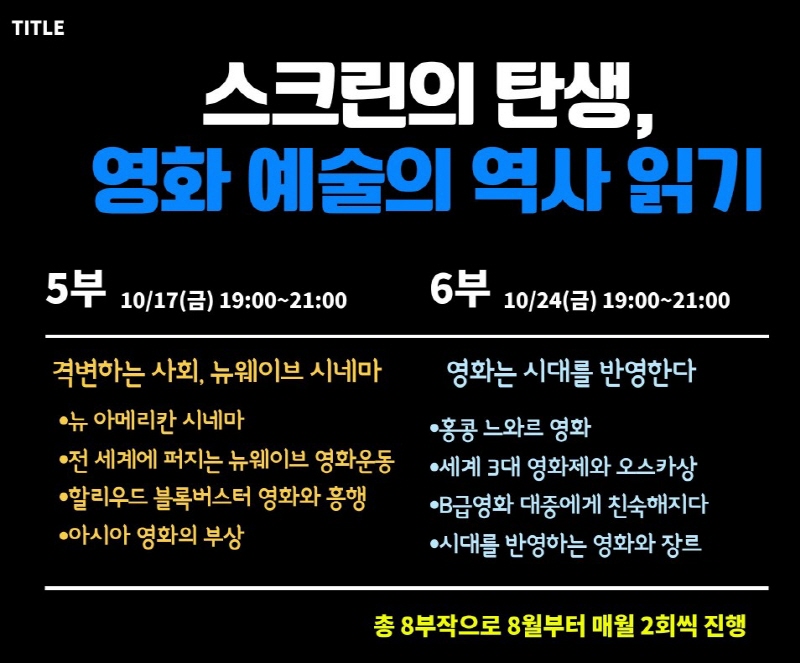 강좌명 | <성인> 스크린의 탄생, 영화 예술의 역사 읽기 - 5부 |