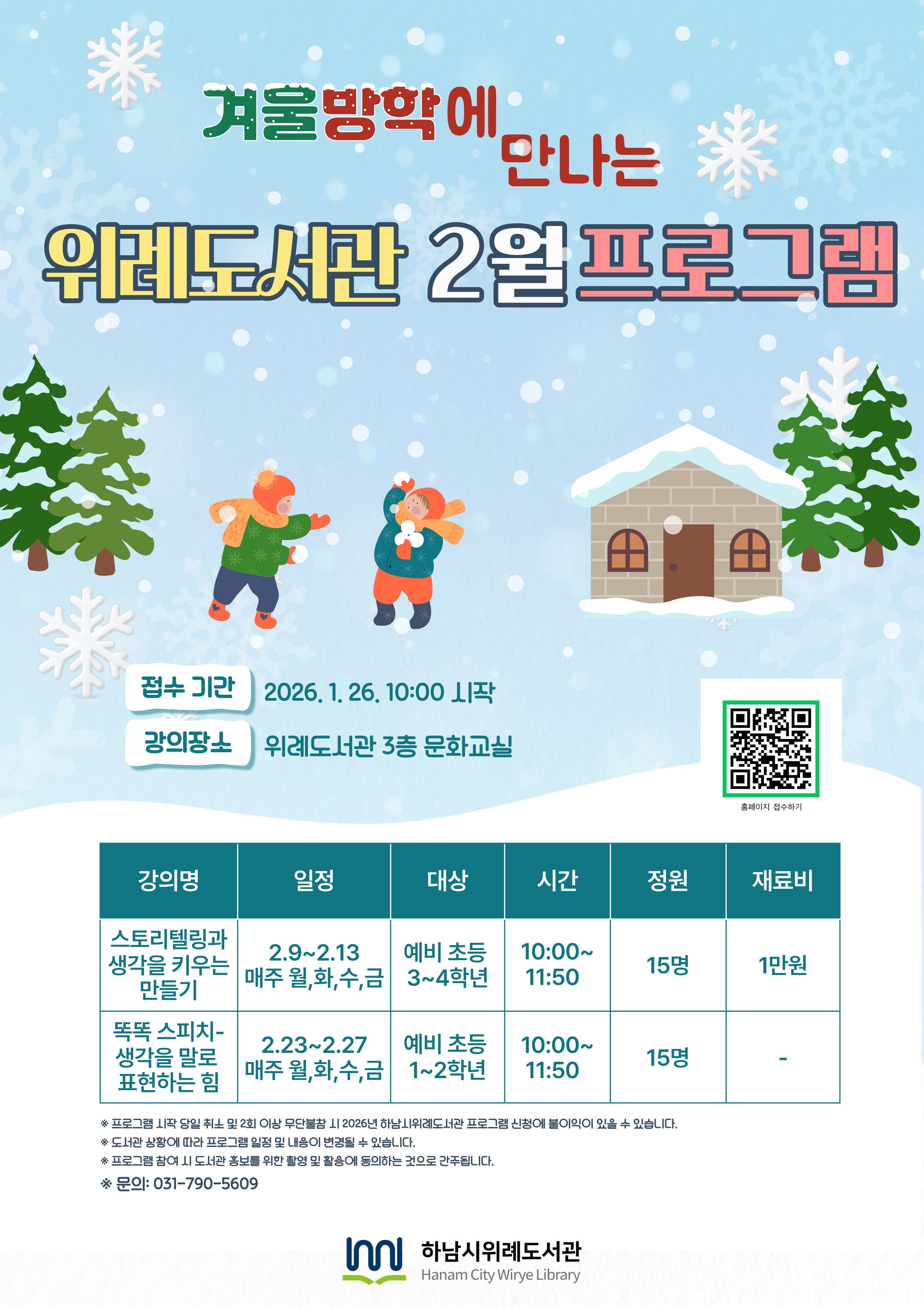 ※ 위례도서관 주차는 1시간 무료이며, 이후에 발생되는 주차비는 자부담입니다.(목요일 휴관)